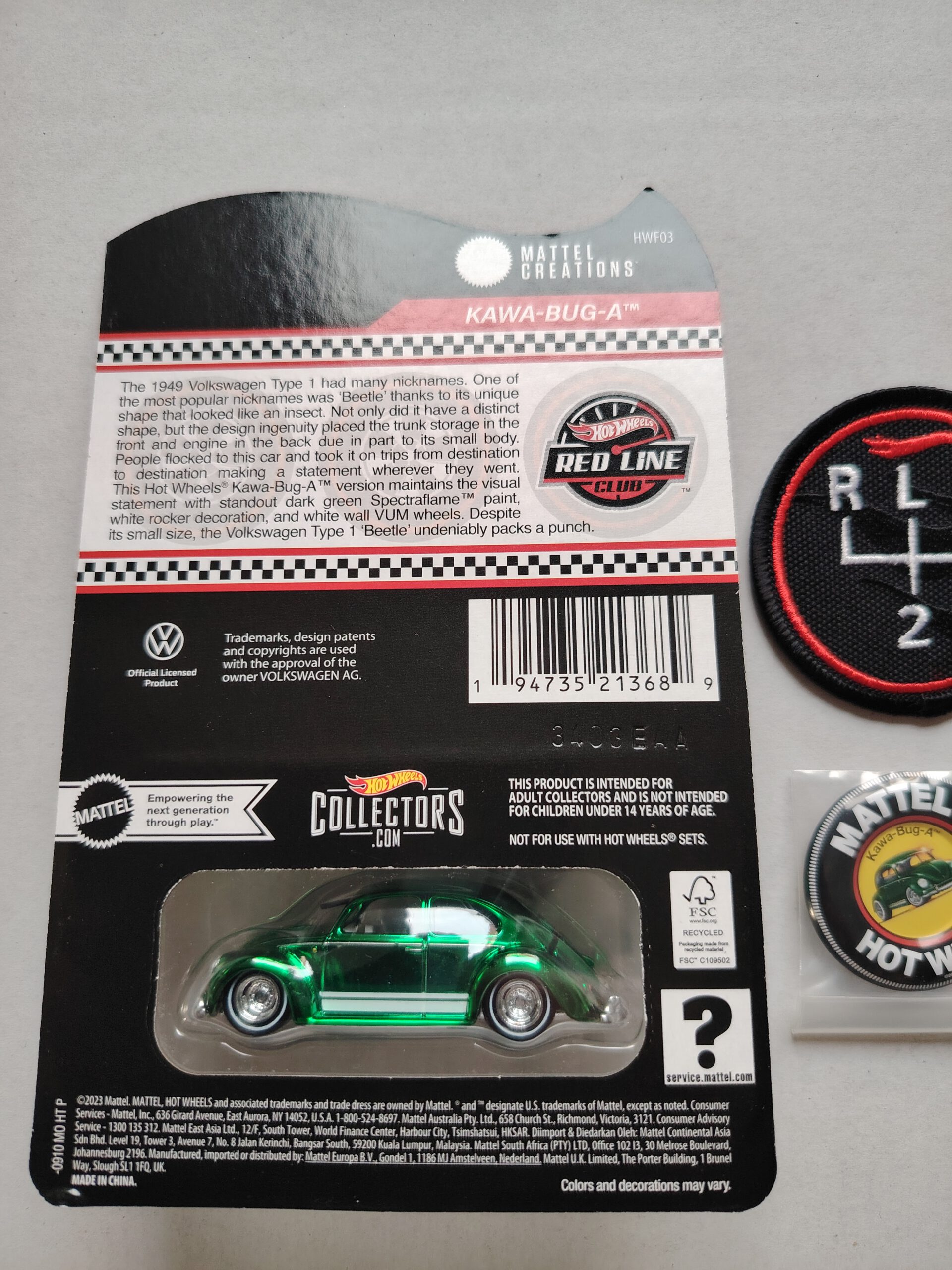 Der Hot Wheels RLC Kawa Bug-A VW ein echter Fanliebling kehrt zurück! Der Kawa-Bug-A glänzt in Spectraflame-Dunkelgrün mit weißen Akzenten und klassischen Weißwandrädern. Die öffnende Heckklappe, das weiße Interieur und die detailreiche Verarbeitung machen ihn zum perfekten Start ins neue RLC-Jahr. Inklusive exklusivem 2024-Mitglieds-Patch und Kawa-Bug-A-Pin